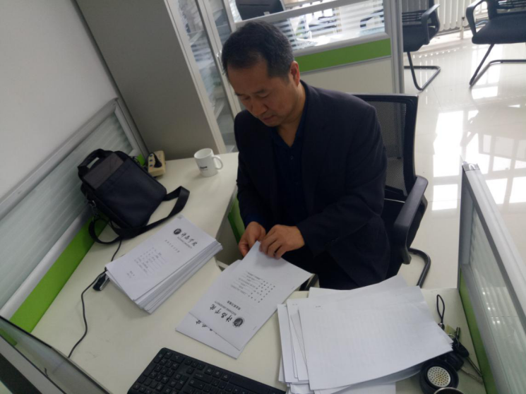 张新铭院长在工商管理系检查毕业生实习材料