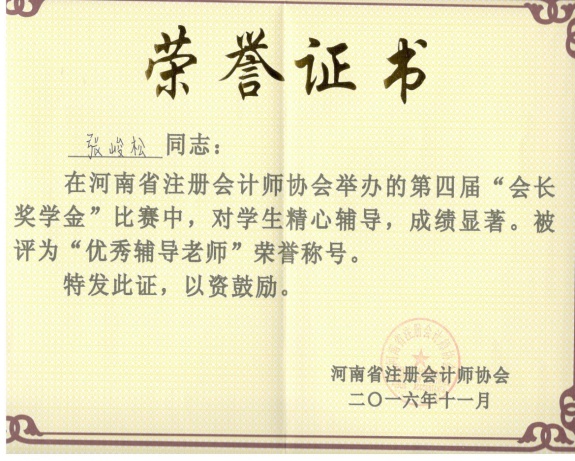 同时,许昌学院获得“优秀组织奖”称号,负责组织、指导本届“会长奖学金”参赛同学的指导老师张峻松荣获“优秀辅导老师”荣誉称号。