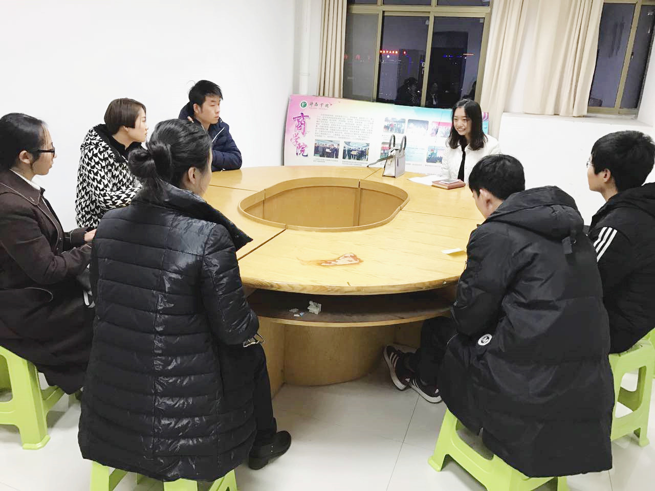 会上,白杨老师先是对寒假留校学生的宿舍分配问题进行了统一通知,并将这六名学生组成一个临时班级,指定了临时负责人;其次又对宿舍管理方面的相关要求对学生进行了传达;最后,也是最重要的,就是学院领导最关心的安全问题,白杨老师将院领导提出了相关的严格要求对学生们进行了一一传达。师生之间建立了微信联络群,以方便相互之间的情况通报,既可以让学生有问题了就第一时间找到老师,又可以让老师时刻了解学生的相关动态。