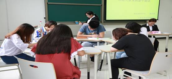 第二阶段为面试环节。通过简历筛选,40位同学进入面试。第一轮面试在文科综合楼选用了6个智慧教室,四个团队同时进行。工作人员提前到场准备,应聘者有序入场,紧张而激烈的面试开始了。每个小组结束面试后,由嘉宾评委给出意见,面试官做出评论。通过第一轮筛选,24位应聘者进入二轮面试,“北京私立汇佳学校”采取的是试讲的形式,其他团队采取的是无领导小组讨论的形式展开面试。试讲形式的或采用PPT展示或采用口头讲述,无领导小组讨论则以更加激烈的讨论形式进行。