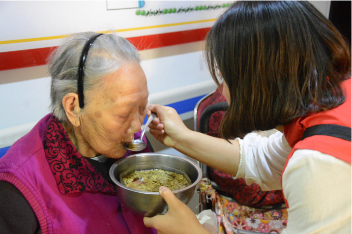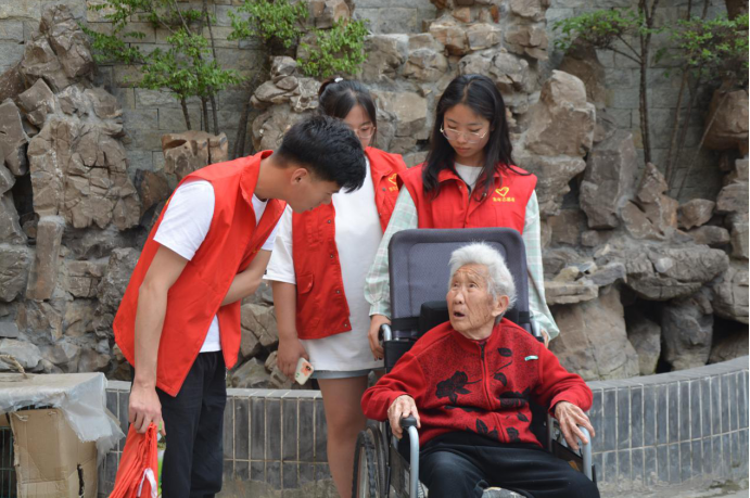 在颐养院中,同学们不仅陪老人们聊天晒太阳,帮老人们解闷,而且协助护工们帮助老人们吃饭洗澡上楼梯等。同学们积极帮忙、浇水、搬重物,也为护工们减轻了负担。在一下午的接触过程中,让同学们明白了尊老敬老的必要性,同时以小见大看到了社会中存在着的问题,并渴望能贡献个人的一份力量,作出相关改革变化。