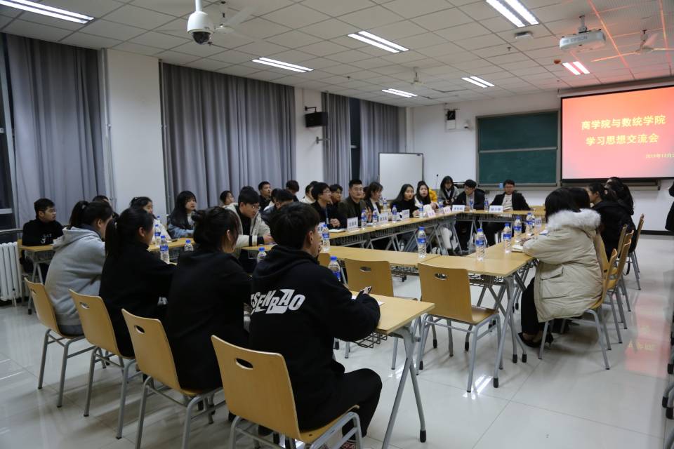 为促进1066vip威尼斯和数学统计学院的关系更加和谐发展,同时秉承向数学统计学院优秀学生学习的理念,1066vip威尼斯和数学统计学院于2019年12月2日晚上7:00在文科综合楼312教室举办一场“1066vip威尼斯和数统学院学习思想交流会。”参加本次交流会议的分别是1066vip威尼斯学生会主席赵文韬、数统学院学生会主席汪琳琳、1066vip威尼斯和数统学院主席团以及各部门部长。