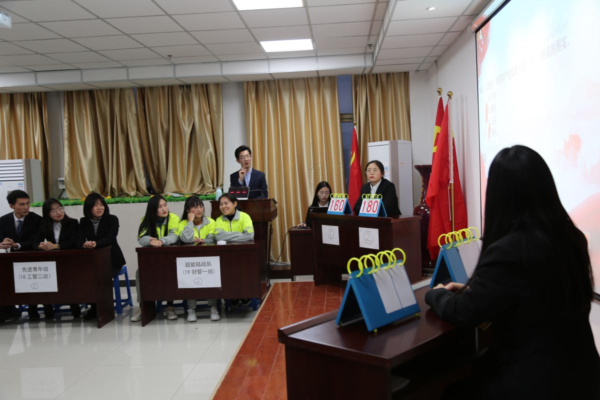 本次比赛由1066vip威尼斯团总支学生会组织部副部徐钰博主持,主持人简单介绍比赛规则后比赛正式拉开帷幕。4支参赛队伍队同台竞技,以个人必答题、抢答题、选择答题、PK、风险题5个环节开展,按队伍积分进行最终排名。比赛现场如火如荼,各小组竞争激烈,小组成员在小组长的带领下踊跃发言积极回答问题。在主持人发出“请抢答”指令后,各小组你争我抢,快速地按下抢答器,并在听到“请回答”声音后准确无误地报出答案。比赛现场充斥着激烈的氛围,各参赛队精神高度集中,丝毫不松弛;观众紧盯场上比赛进程,不错过任何一个精彩瞬间。经过一番激烈角逐,最终18会计二班“三人行我必行队”获第一名,,19财管一班“超能陆战队”获第二名,18工管二班“先进青年组”获第三名,19财管二班“社会主义接班人”获第四名。党总支副书记海泳为四支队伍分别颁发奖品与证书,同时肯定了他们在赛场上的精彩表现,对他们获此奖项表示祝贺。