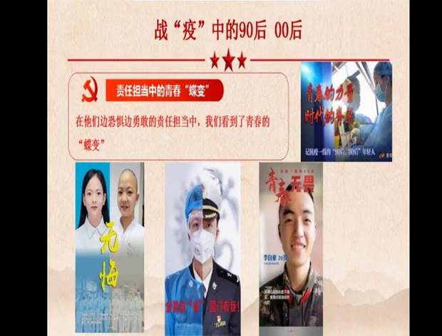李盼盼老师围绕“绚丽青春担当使命,笃志学习时代英雄”的主题开展此次团课,给同学们分享当代青年在疫情期间的优秀事迹,讲述习近平总书记对青年的评价,号召同学们积极向优秀青年学习,了解少年的担当和使命,争取为国家做贡献。同时,针对此次疫情中对党员的要求,李盼盼老师倡导同学们铭记党员先锋模范,学习党员先锋的精神。并且指出,党员的先锋模范作用,在不同时期有着不同内涵。新时期共产党员的先锋模范作用,具备鲜明的新时代特征。