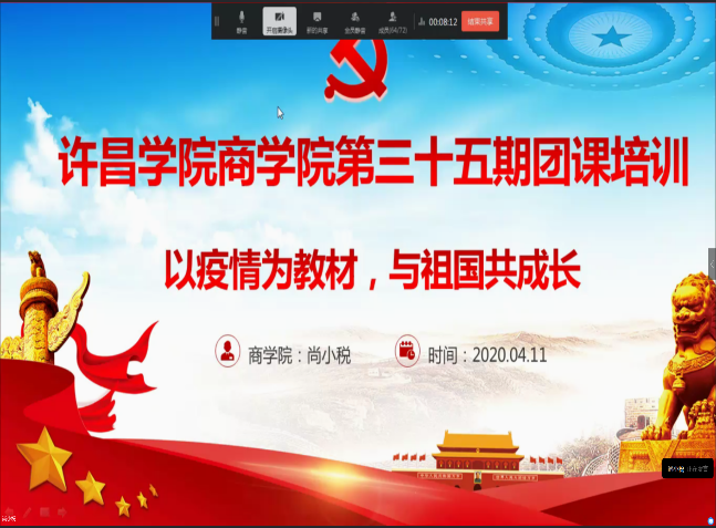 2020年4月12日上午8点30分,威尼斯官网在线上开展了第三十五期业余团校培训课第三讲,此次团课主讲人为李盼盼老师,第三十五期团课培训成员参与。