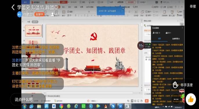 本次课程的主题是“学团史、知团情、践团章”,由中国共产主义青年团的光辉历史、使命和性质、新时代青年的使命和青春与“蝶变”四个部分组成。课程开始,沈鹤立老师以解释“中国共产主义共青团”为切入点,提问大家对共青团的相关知识,讲解共青团发展的三个阶段、两个历史事件并介绍其历史经过和历史意义。课程讲解中,沈鹤立老师时刻强调新时代青年的新使命,要求大家一定要时刻注意自己的行为,端正态度;鼓励大家相信自己,坚定信念,勇敢逐梦。课程最后,沈鹤立老师结合国家疫情之战中90后、00后的突出表现,呼吁同学们在责任担当中“蝶变”,做勇于担当大任的时代青年。
