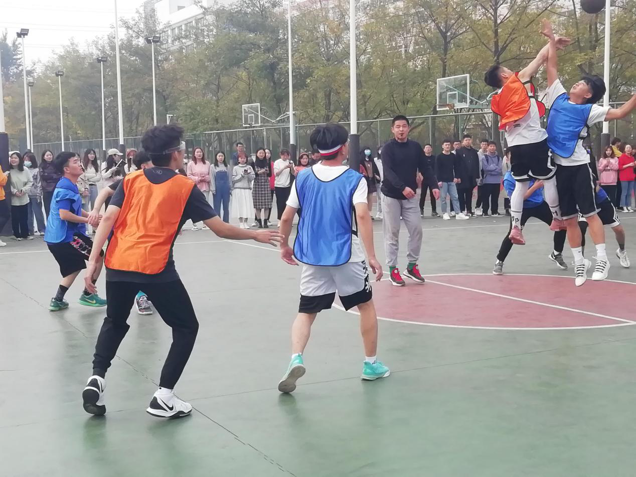 中午13时许,篮球赛正式开始。赛场上,常鑫源、韩辉等16名球队队员配合出色,上场球员左突右击、奋力拿分,替补队员摩拳擦掌、跃跃欲试。赛场周围百余同学到场为球员加油呐喊,球赛甫一开始,来加油的同学们便开始代表两个专业的球队进行场下声浪PK,热火朝天的氛围引来校园里人们纷纷驻足观看,好不热闹。