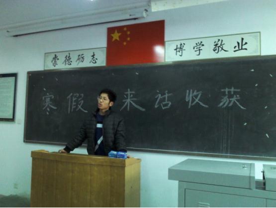 会上,曾春梅同学首先为大家分享了寒假里在餐馆中的打工体验,她寒假里在家乡的“印象汤公”餐馆工作,待遇虽然不是太好,但是曾春梅同学还是感悟颇深,她明白人生重在实践,抱怨不能改变现状,唯有先改变自己,让自己更加优秀,才能最终改变命运。